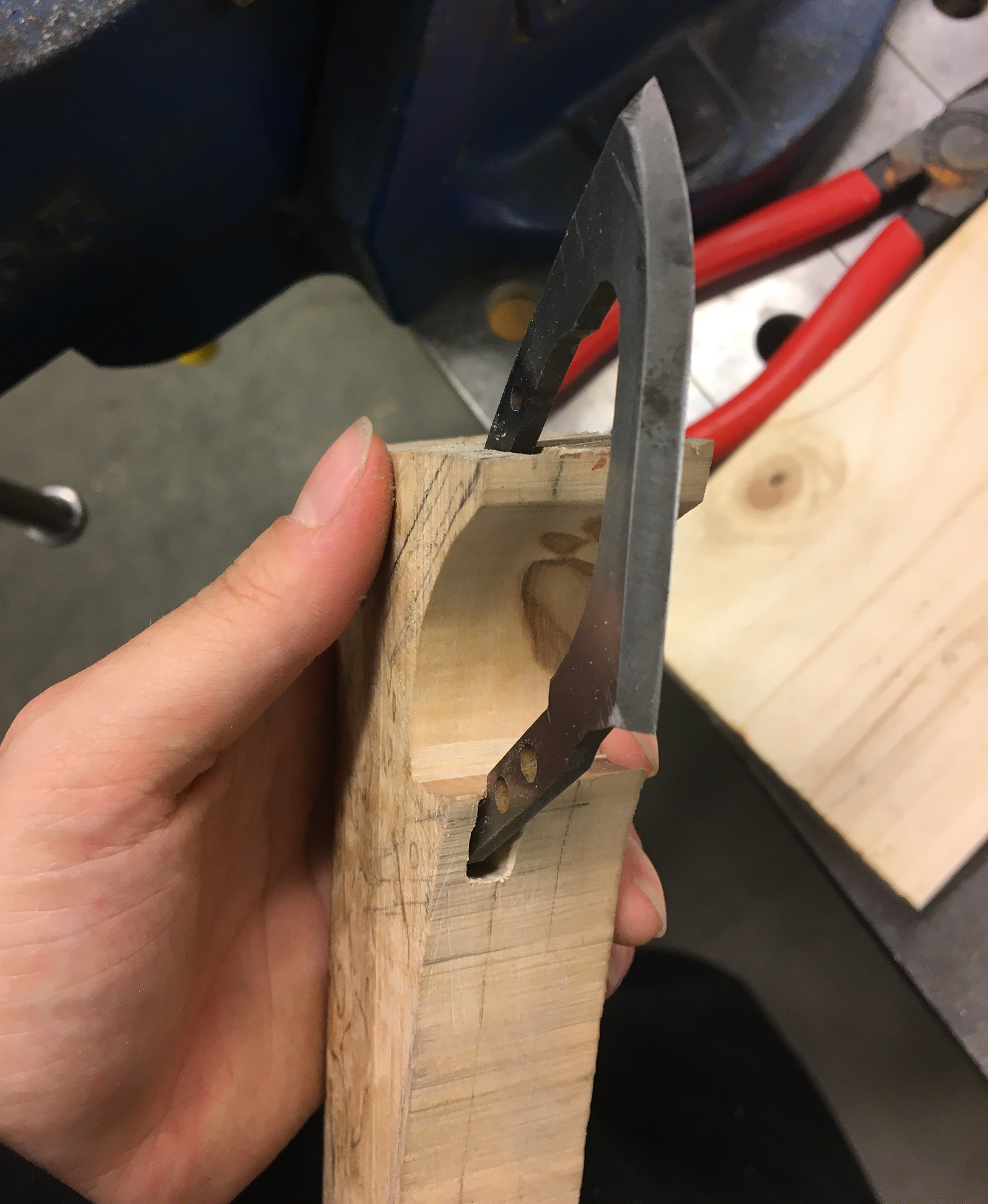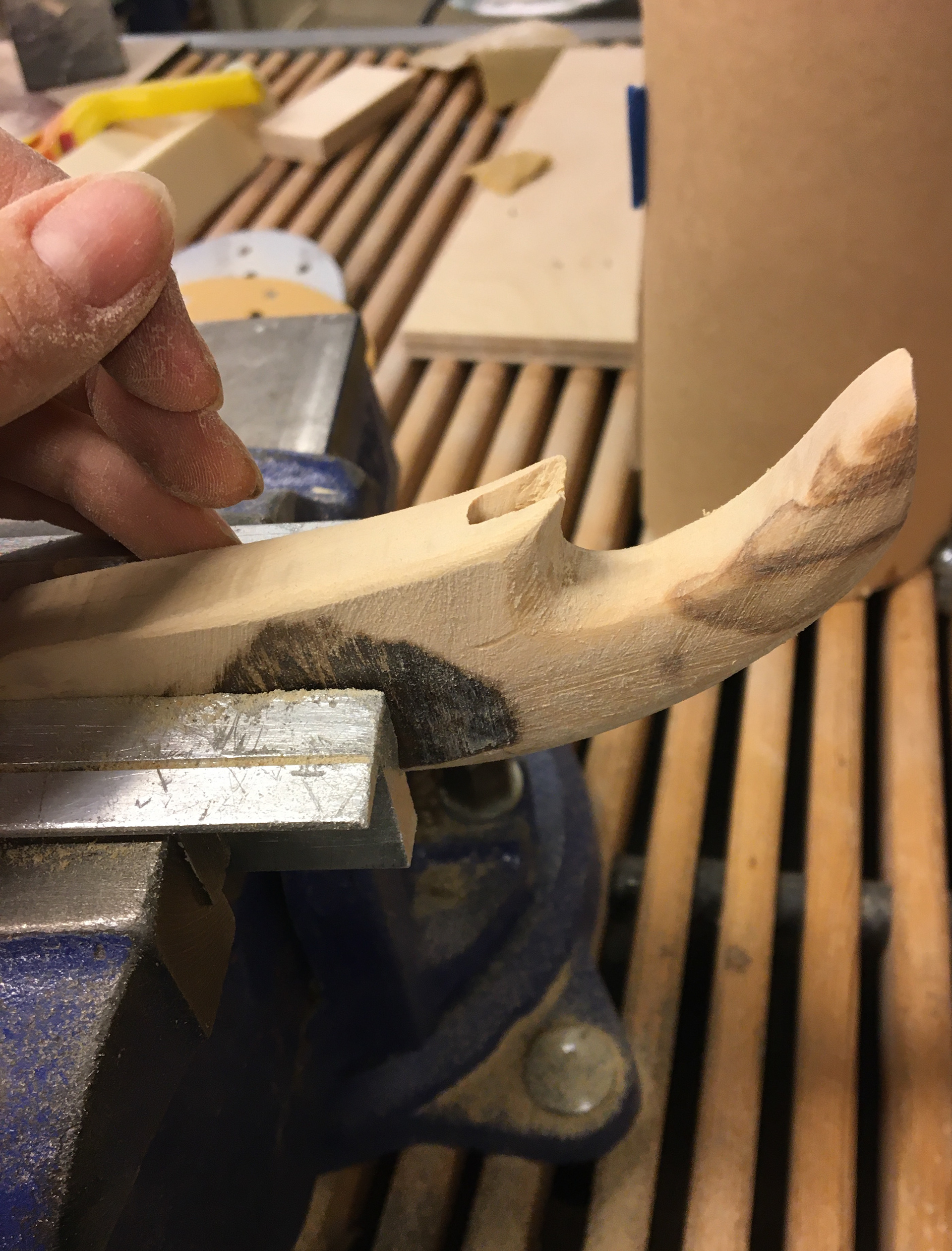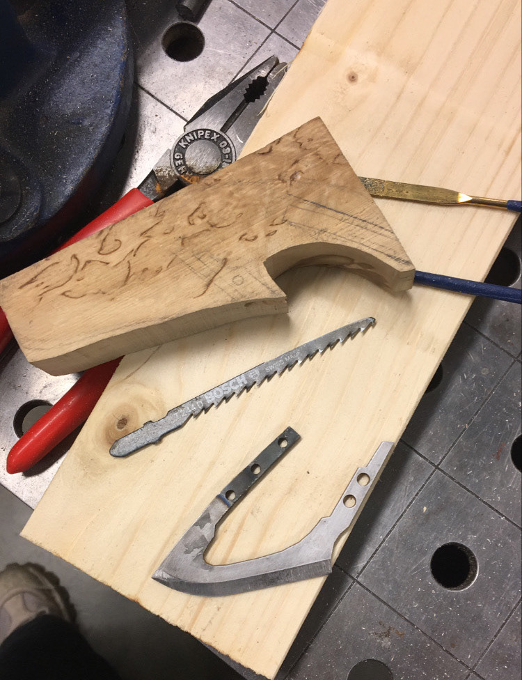 This wood shaft became my personal side project. It is combined with the original knife blade we developed in a group project earlier at AHO. The form is inspired from the qualities you can find in the injection molded knife (picture above).