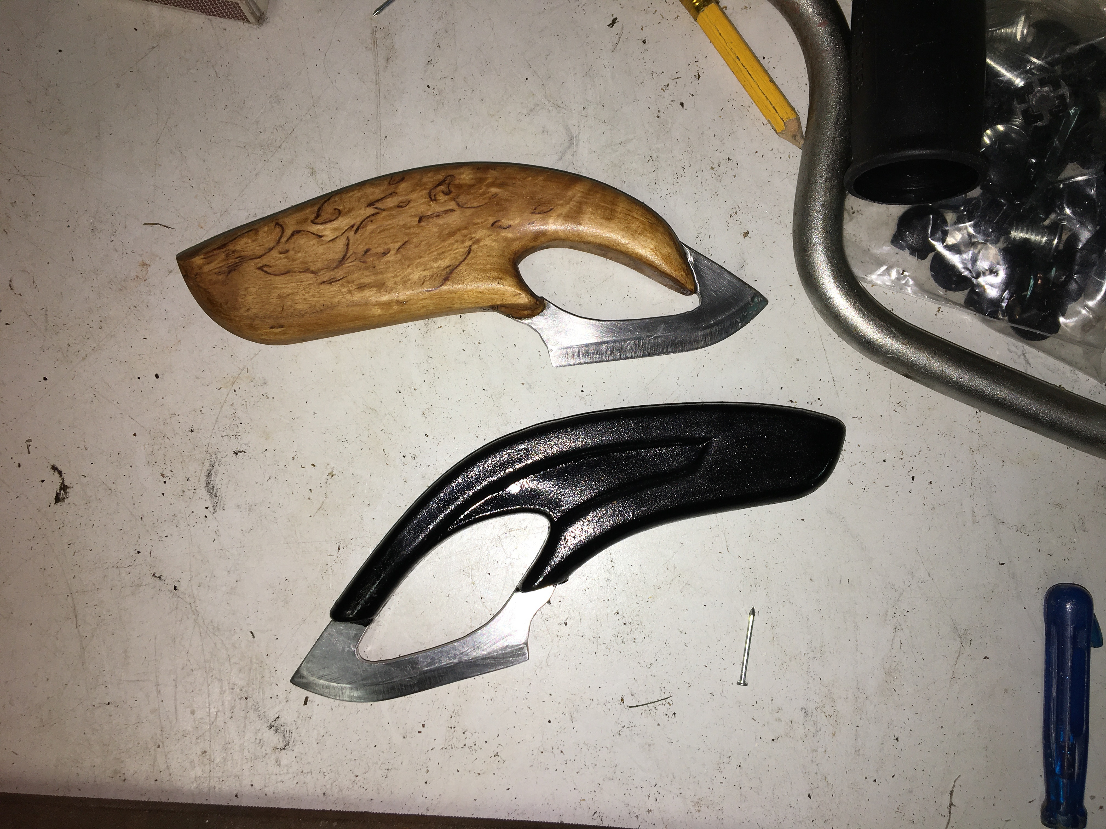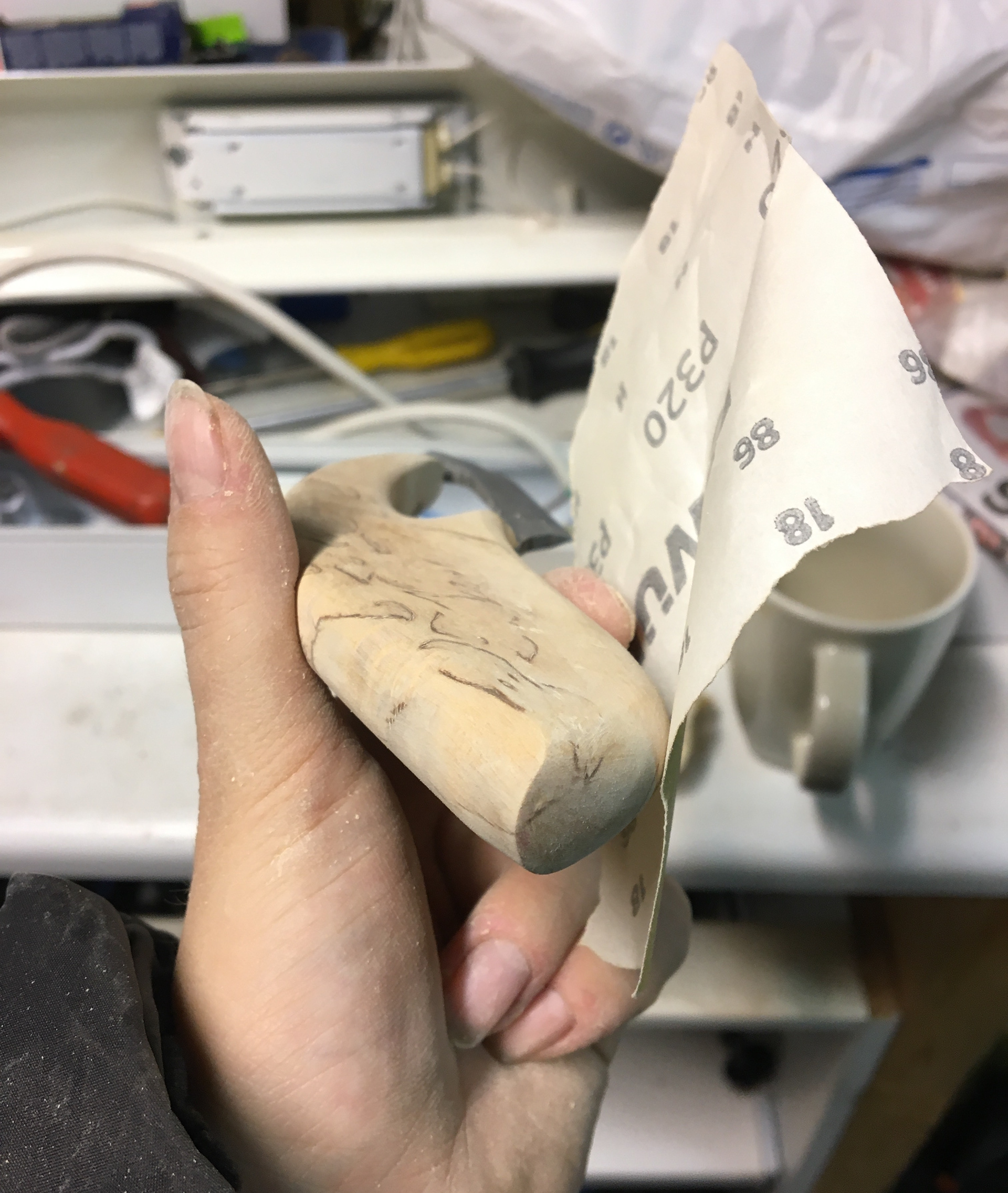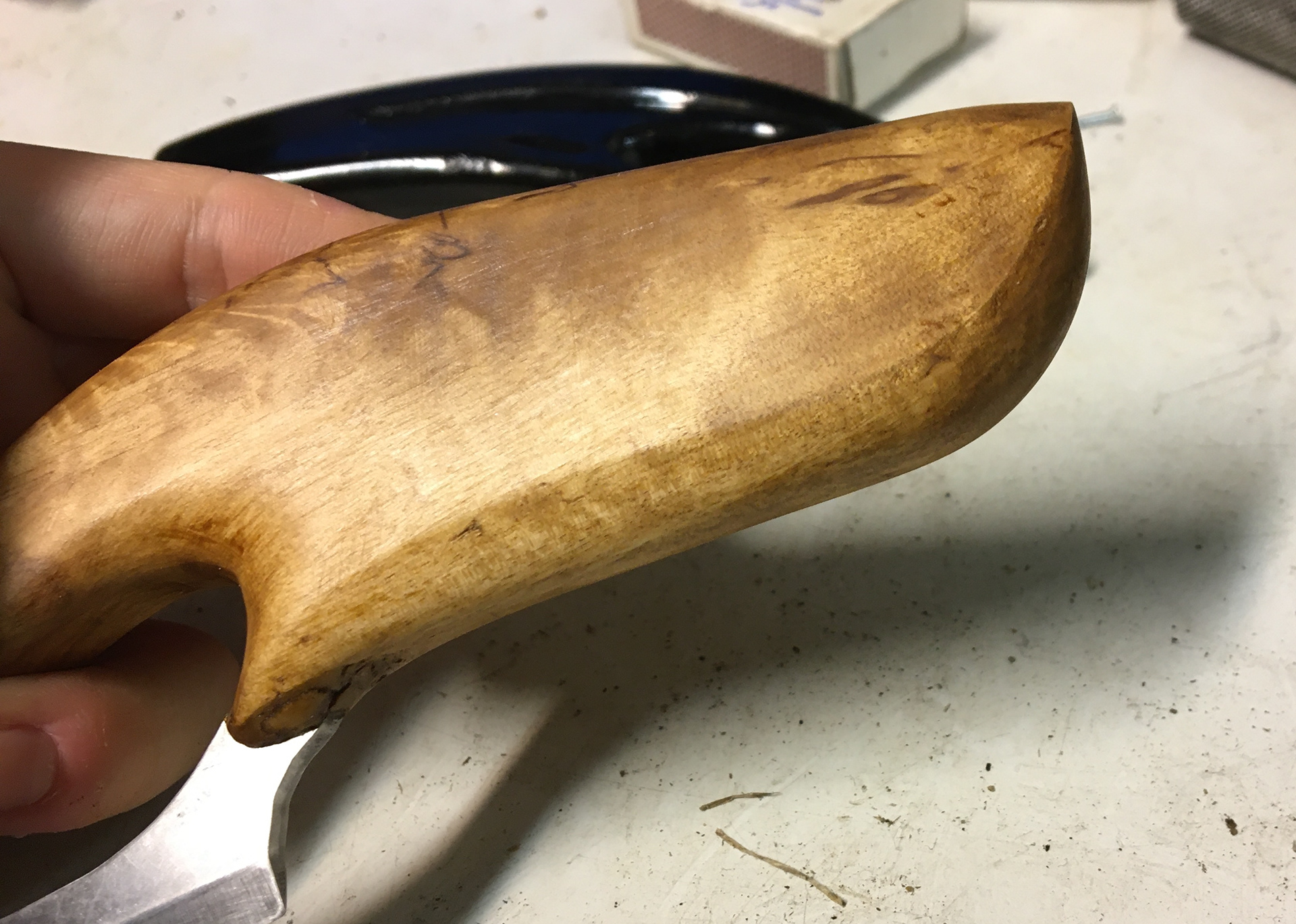 This wood shaft became my personal side project. It is combined with the original knife blade we developed in a group project earlier at AHO. The form is inspired from the qualities you can find in the injection molded knife (picture above).