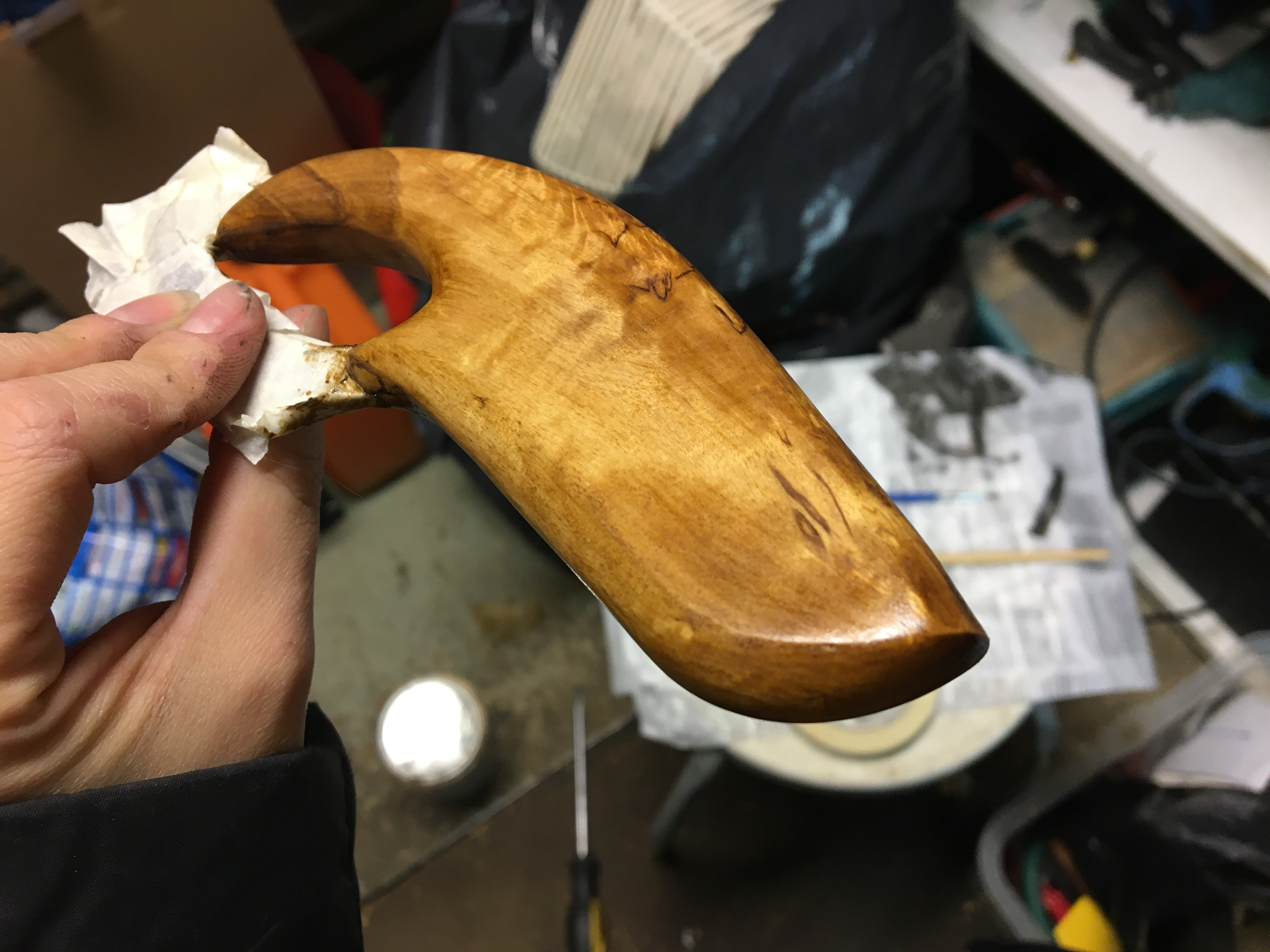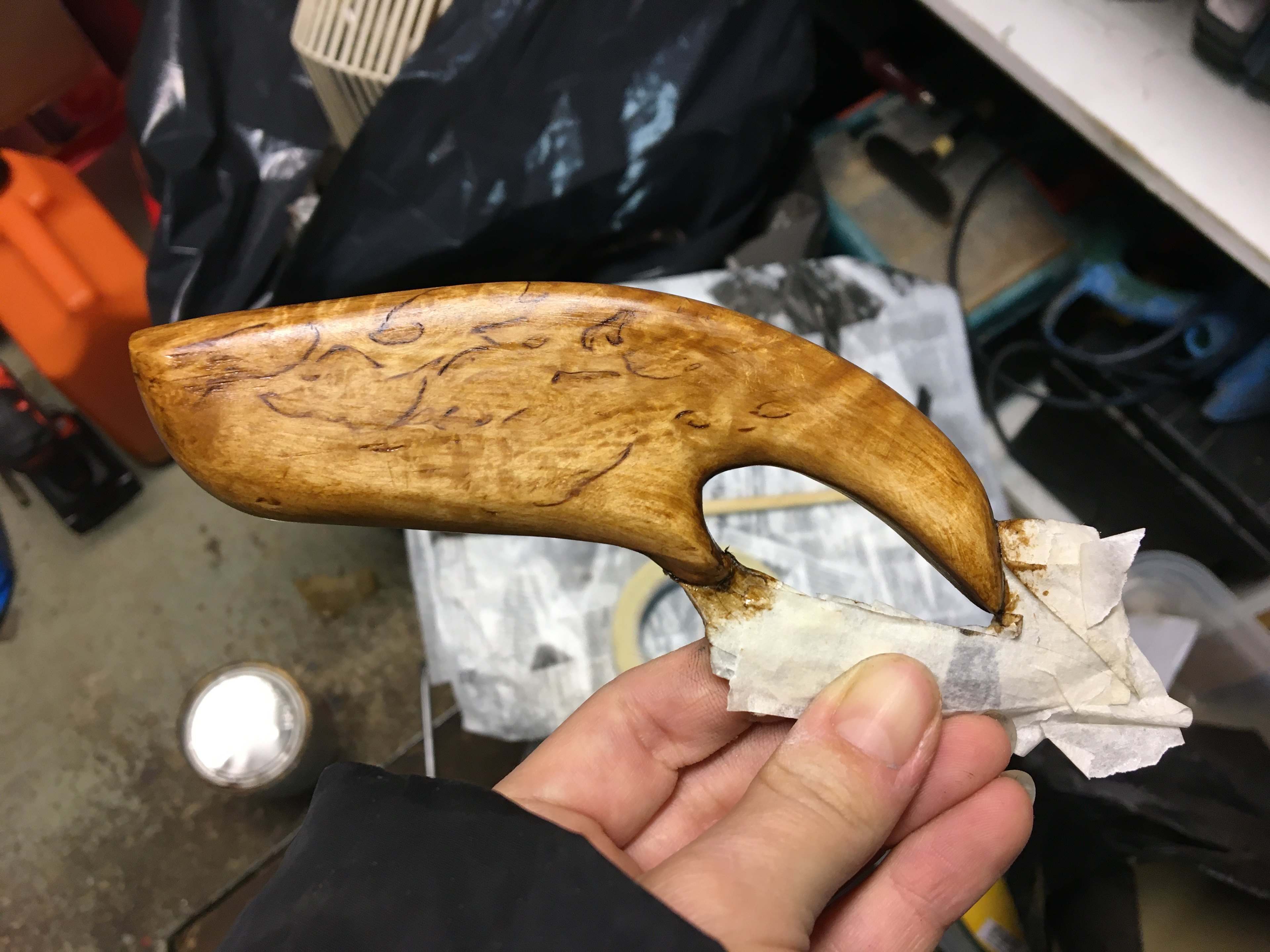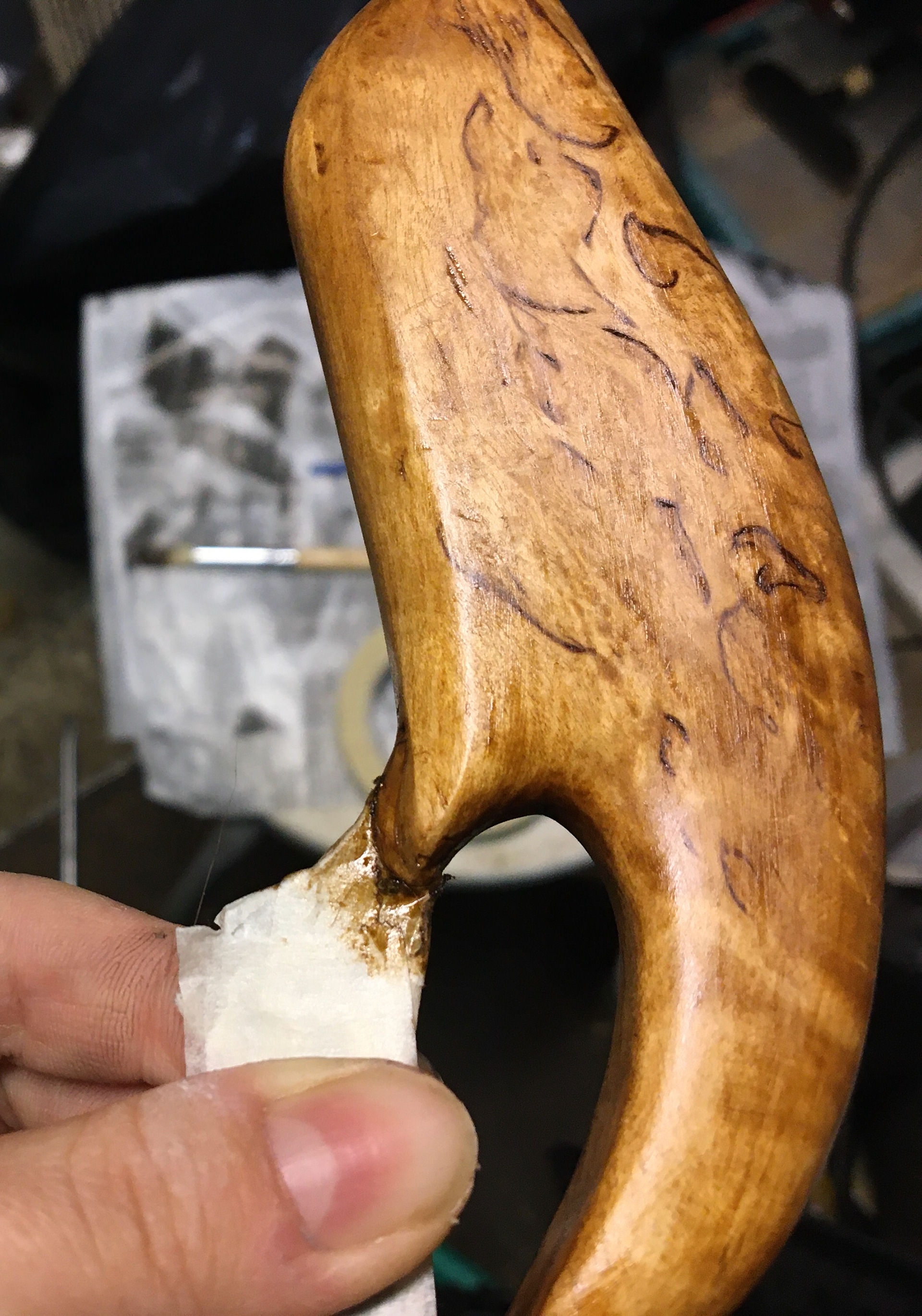 This wood handle is a gift I made for my 72 year old grandpa. Spending time in nature and fishing is still a great source of joy for this man.