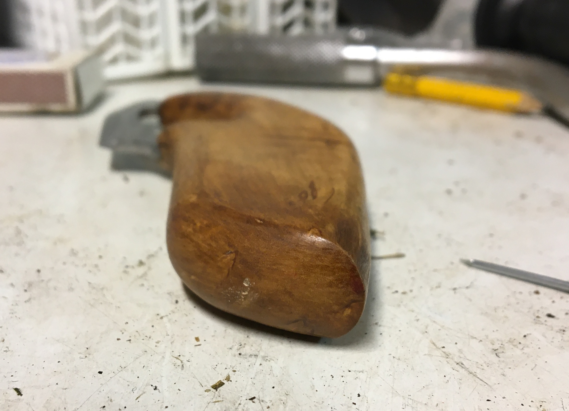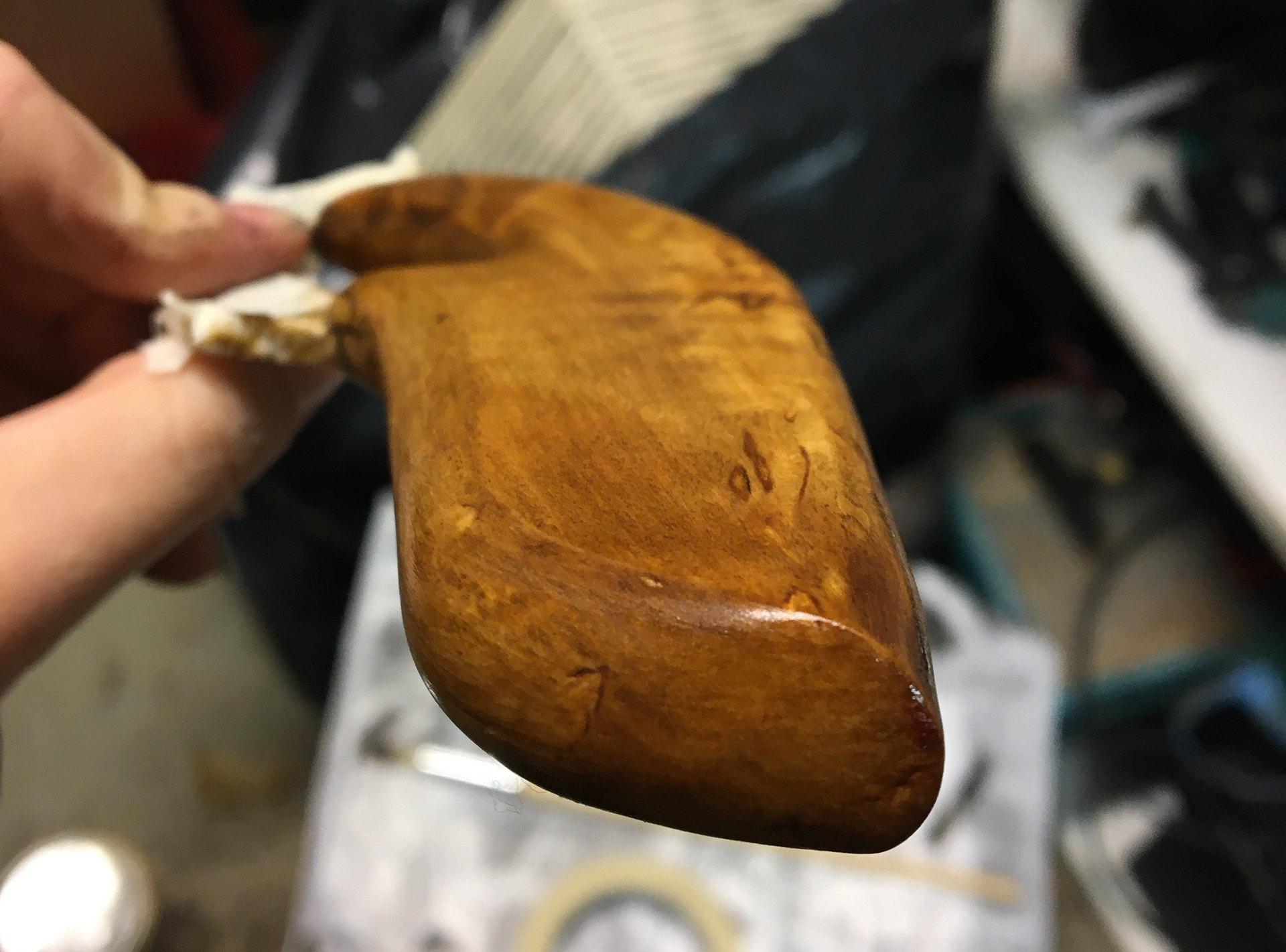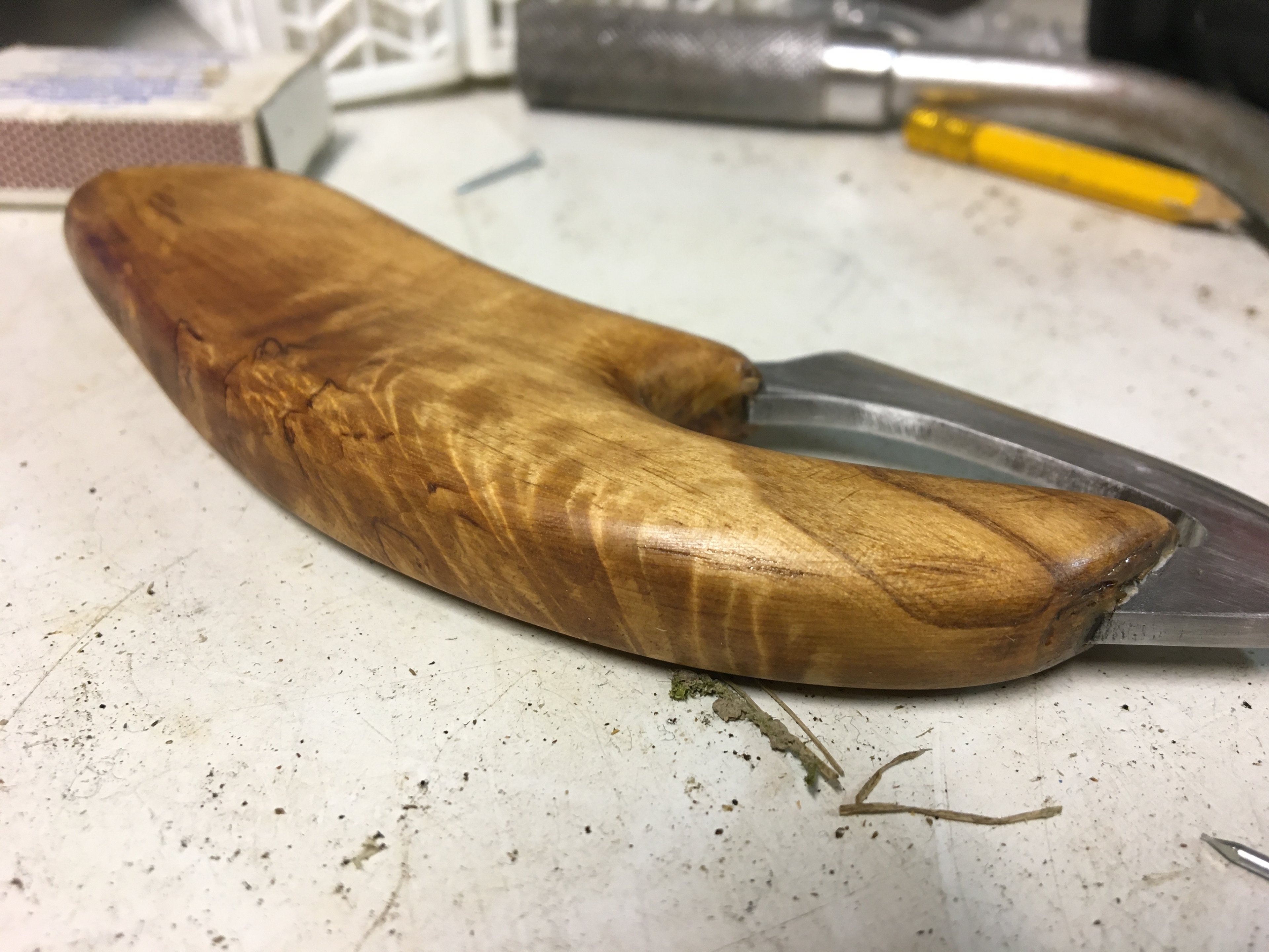 This wood handle is a gift I made for my 72 year old grandpa. Spending time in nature and fishing is still a great source of joy for this man.